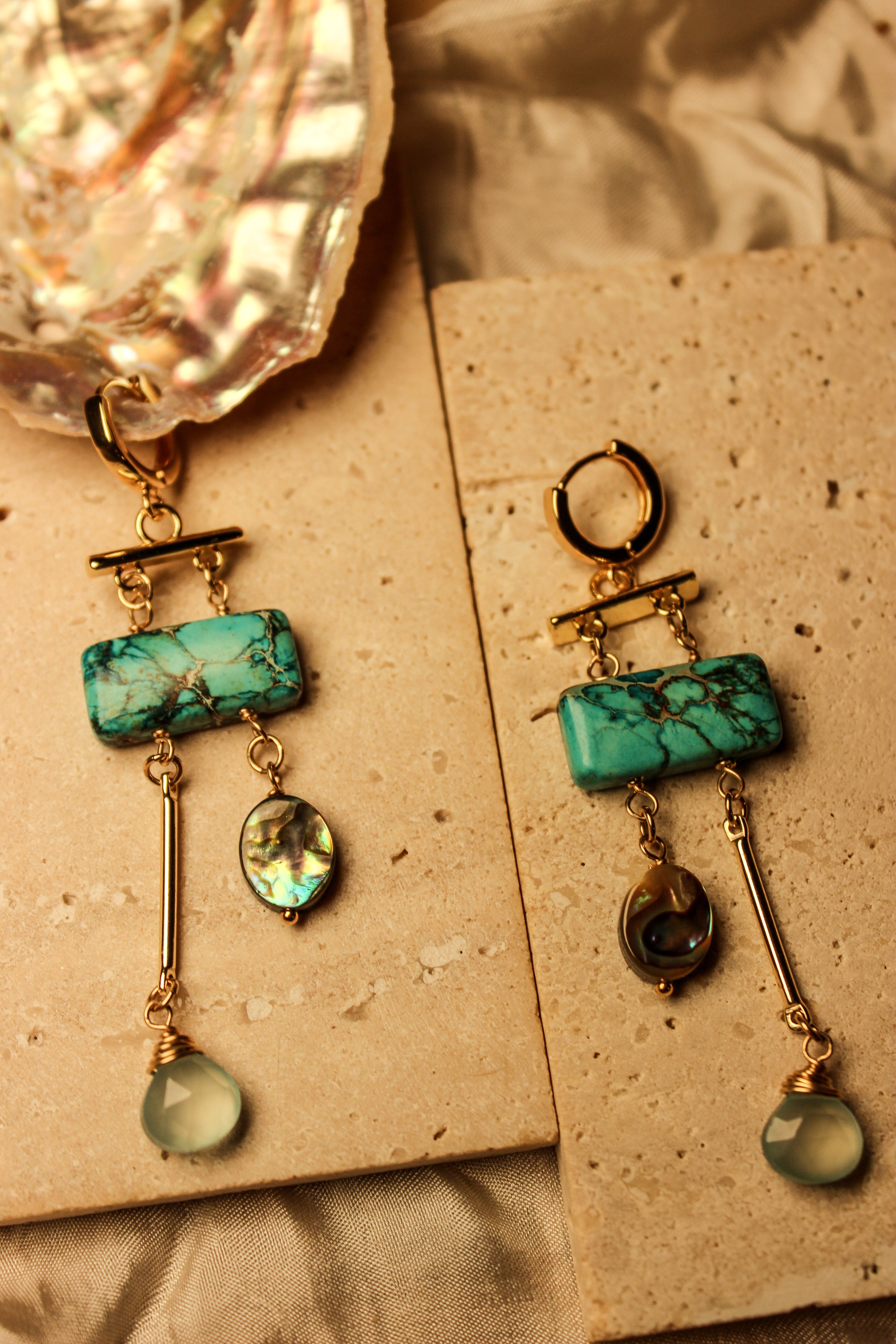 made from gold-filled and sterling silver materials combined with beach finds