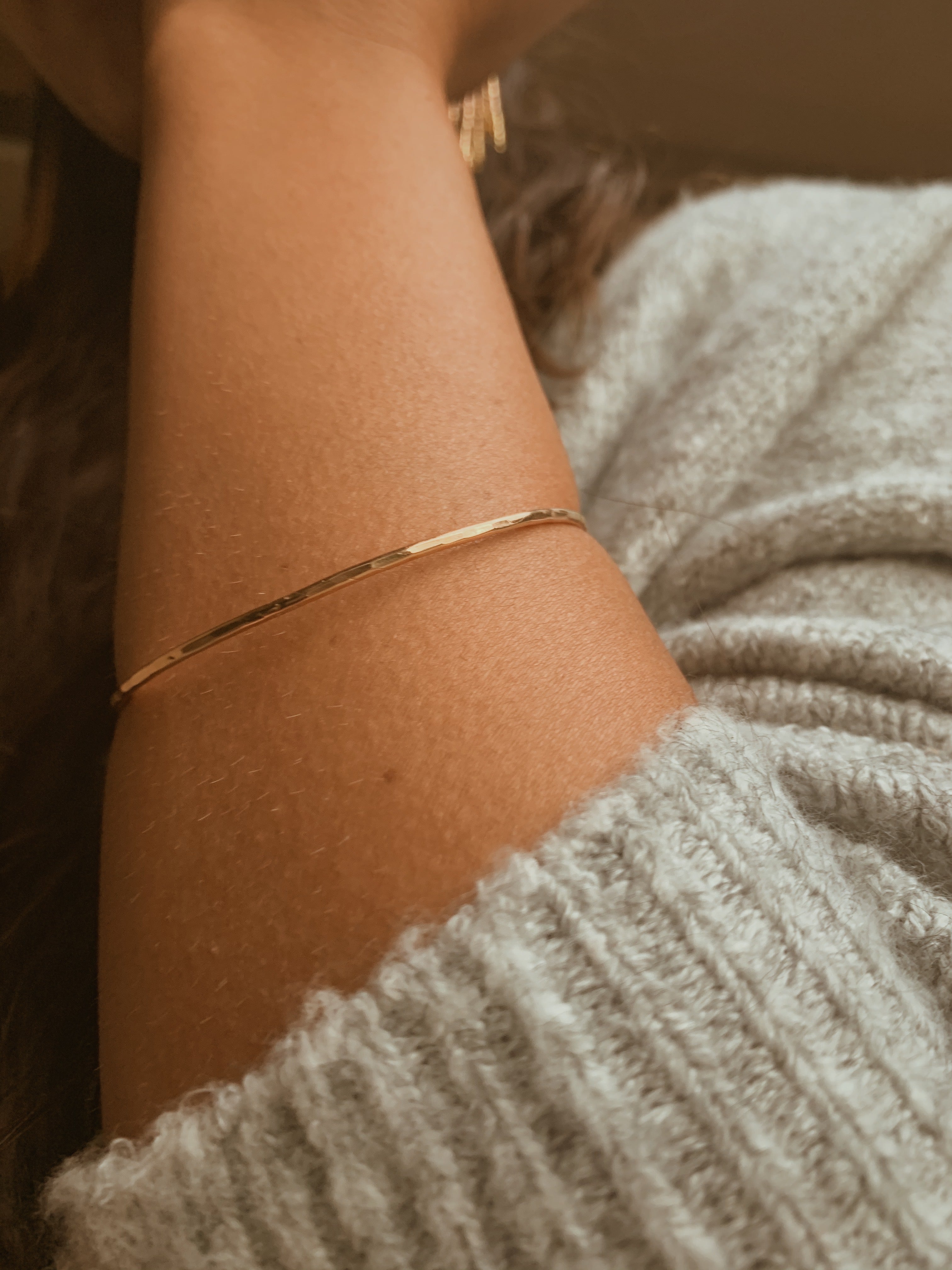 Gold filled hammered bangle.
