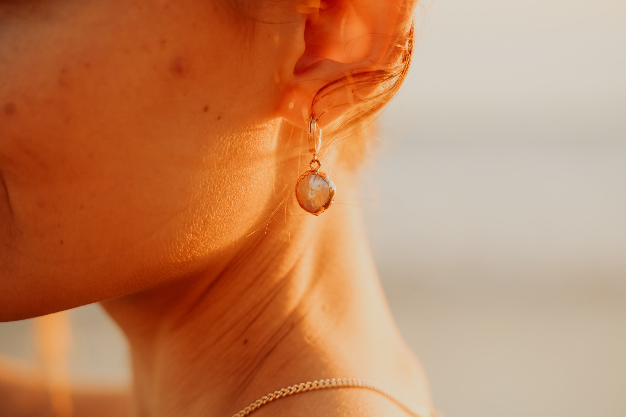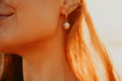 14k gold-filled 13mm huggie with a gold electroplated baroque pearl. Each pearl will be different due to the natural nature of them. Pearls have electroplated gold edges and are not recommended for extended water wear.