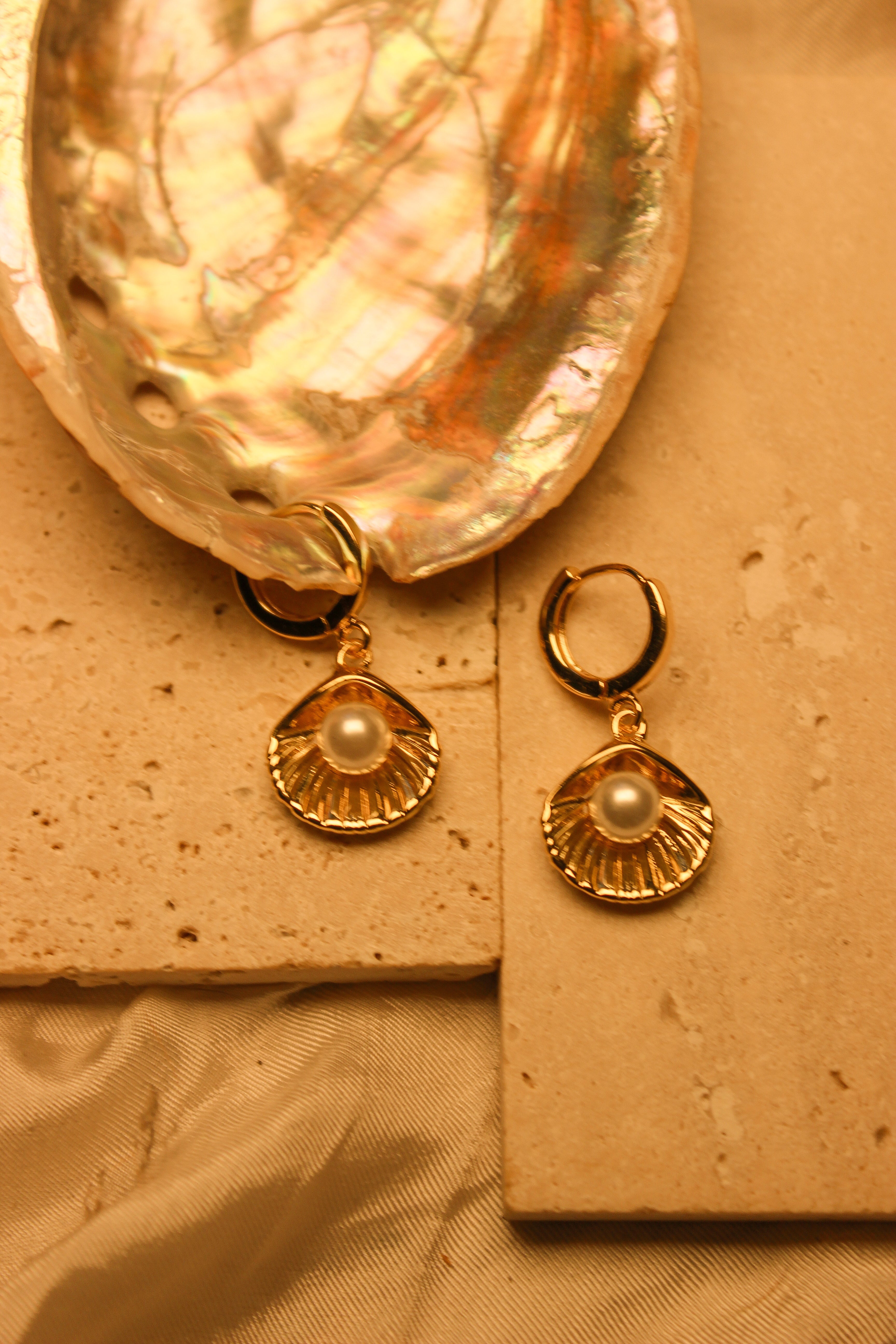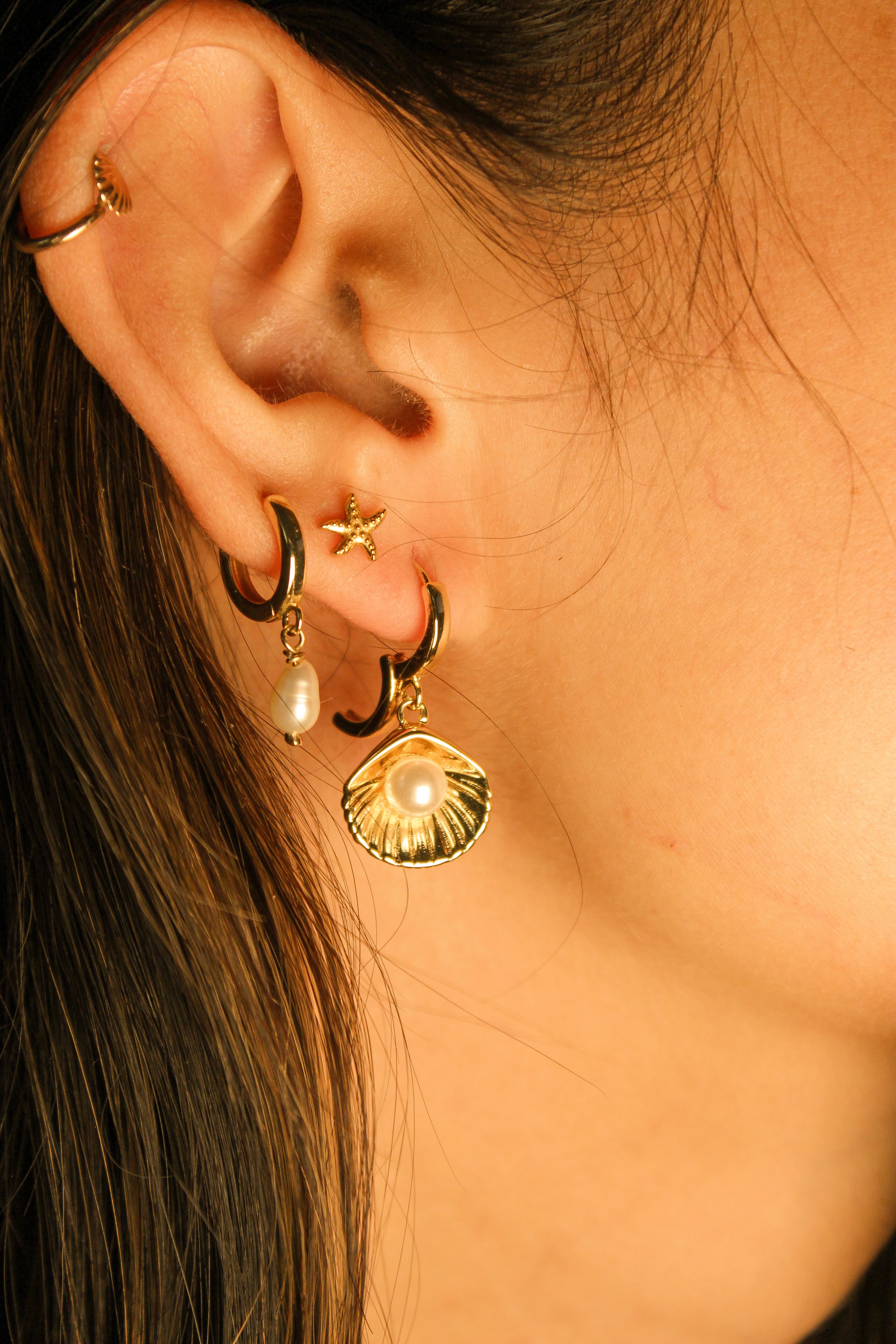 "Keep your ears stylishly and securely hugged with our Clamshell Huggies! These gold-filled huggies are water-resistant, with a click back closure for added security. And the cherry on top? A charming gold-filled clamshell with a gleaming pearl. Perfect for any outfit and any occasion."