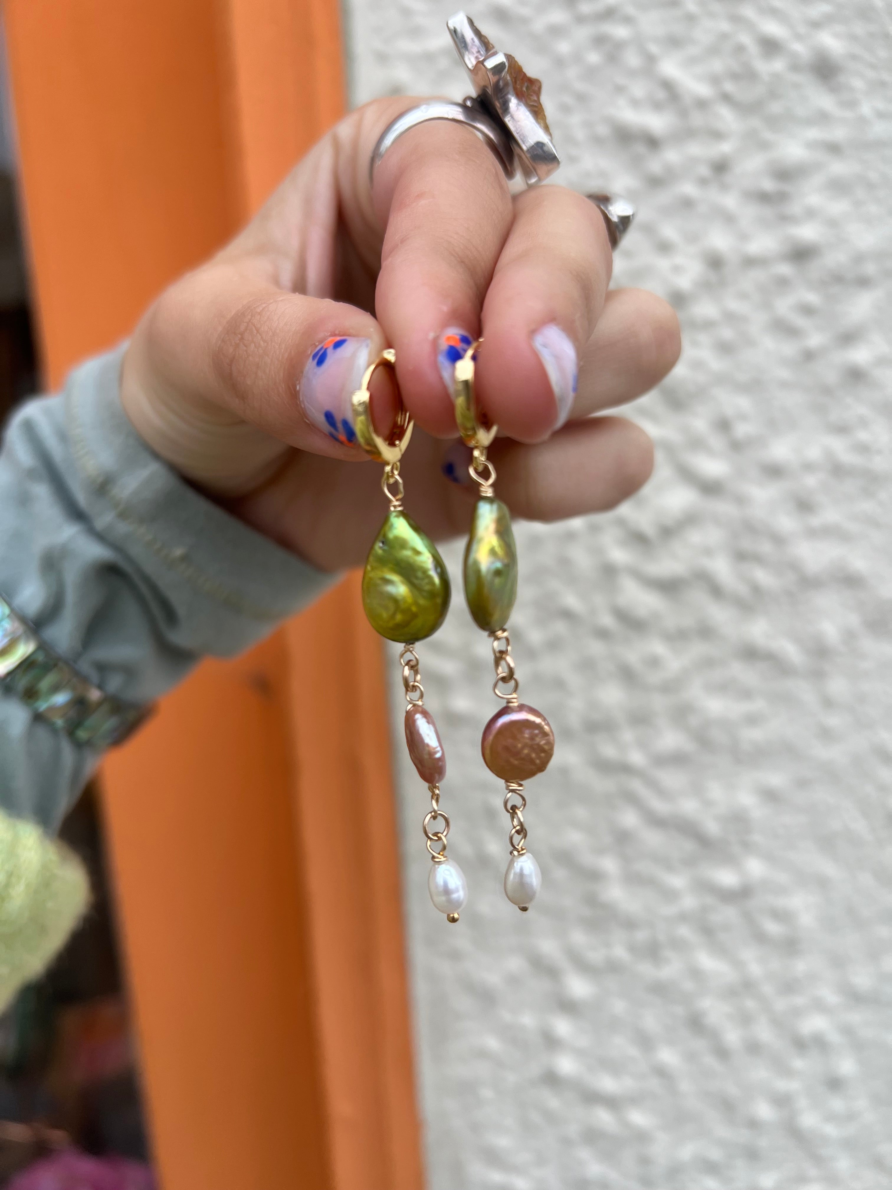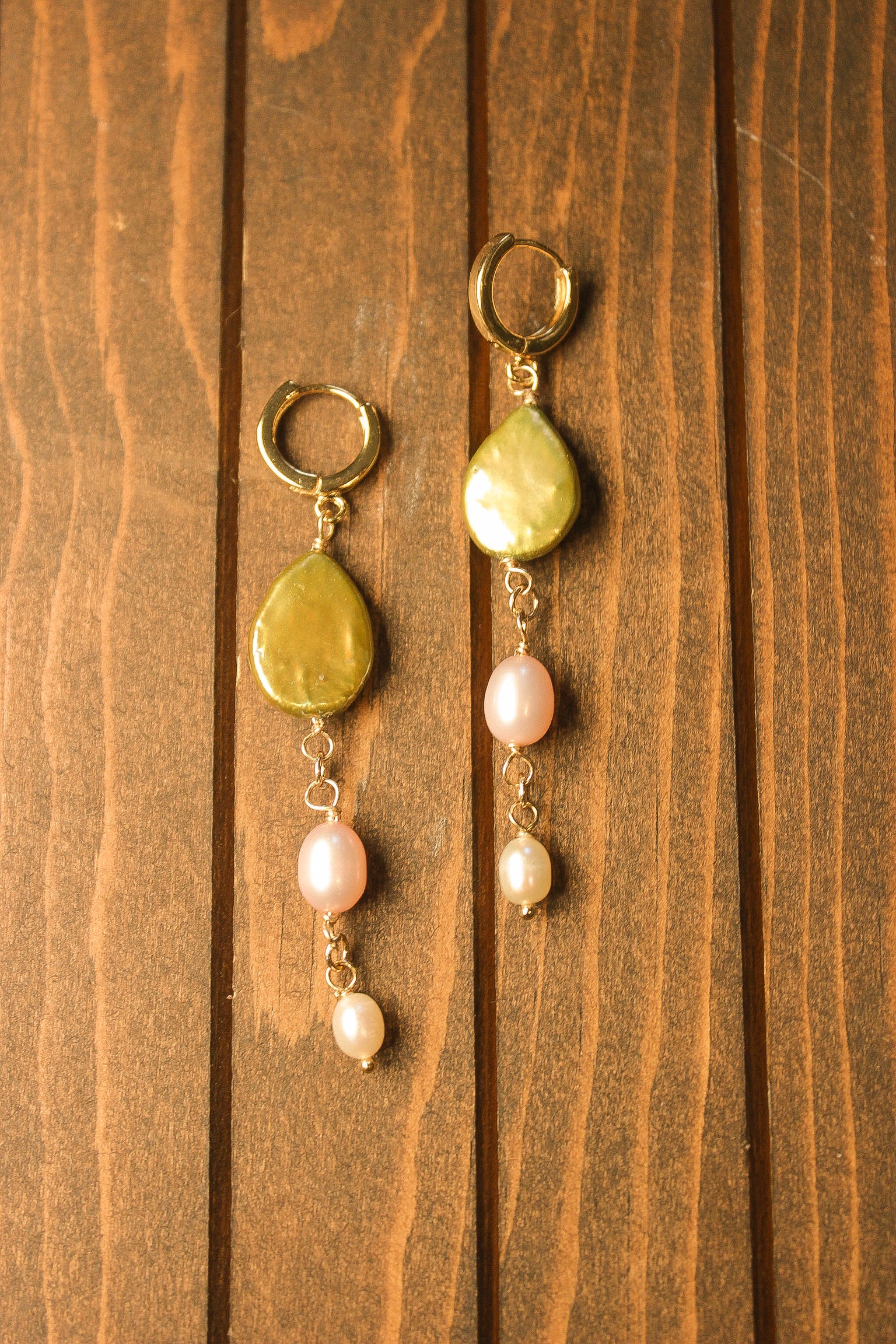 Get some Faerie Huggies and feel like a magical creature with these gold filled 14mm thick latch back hoops. The green, pink, and pink pearls add a playful touch and the water resistant and nickel free design ensures comfort and durability. Who says faeries can't be stylish?