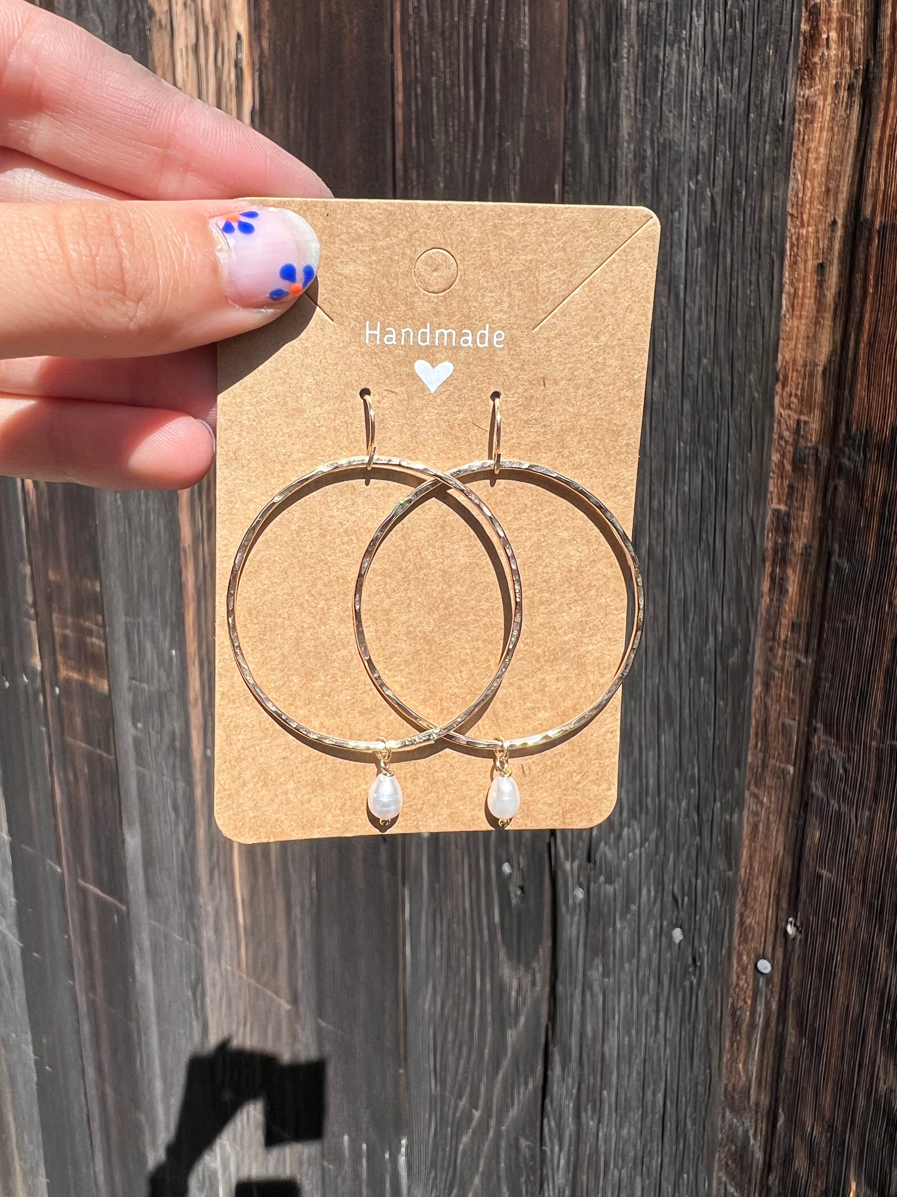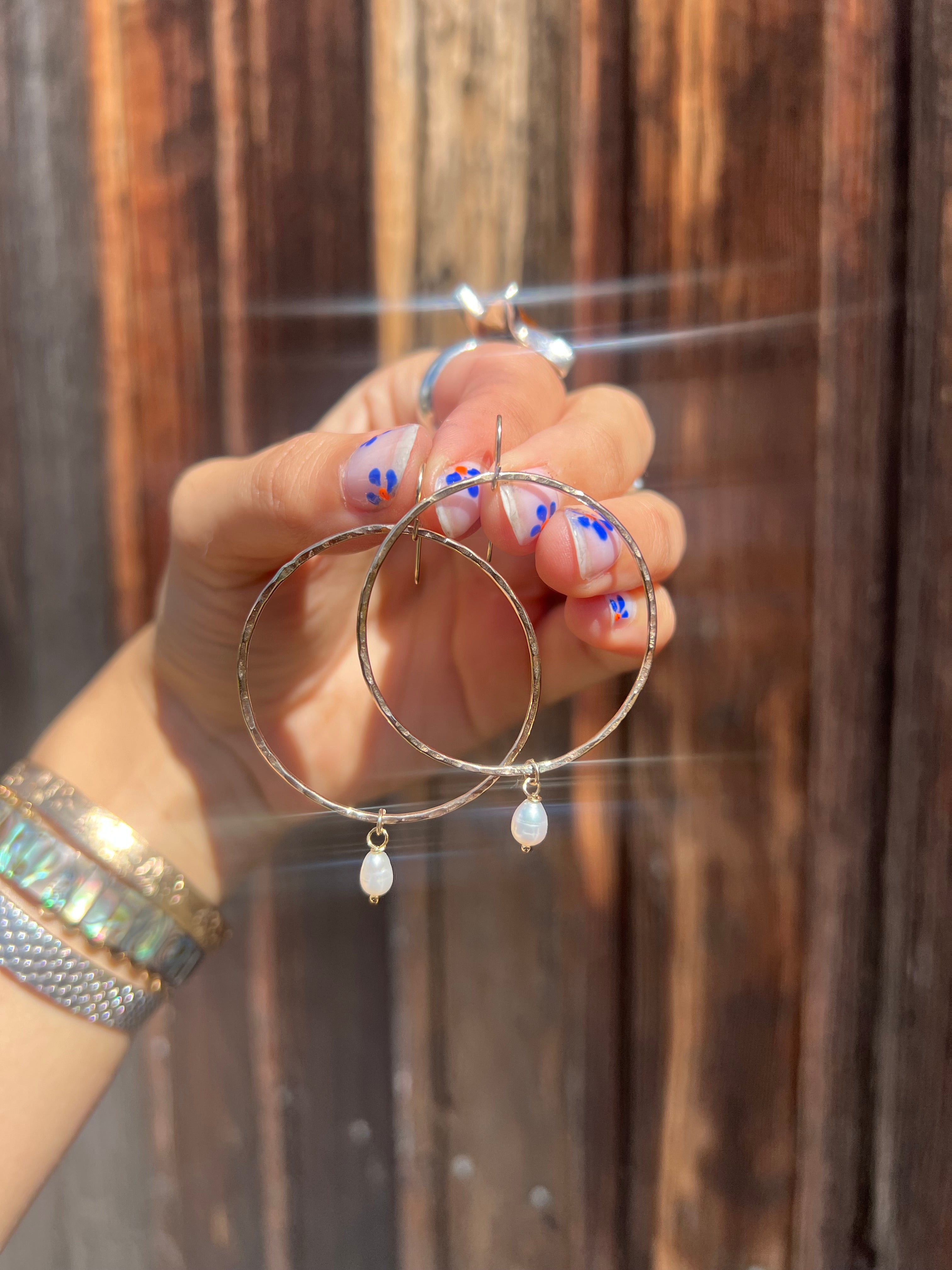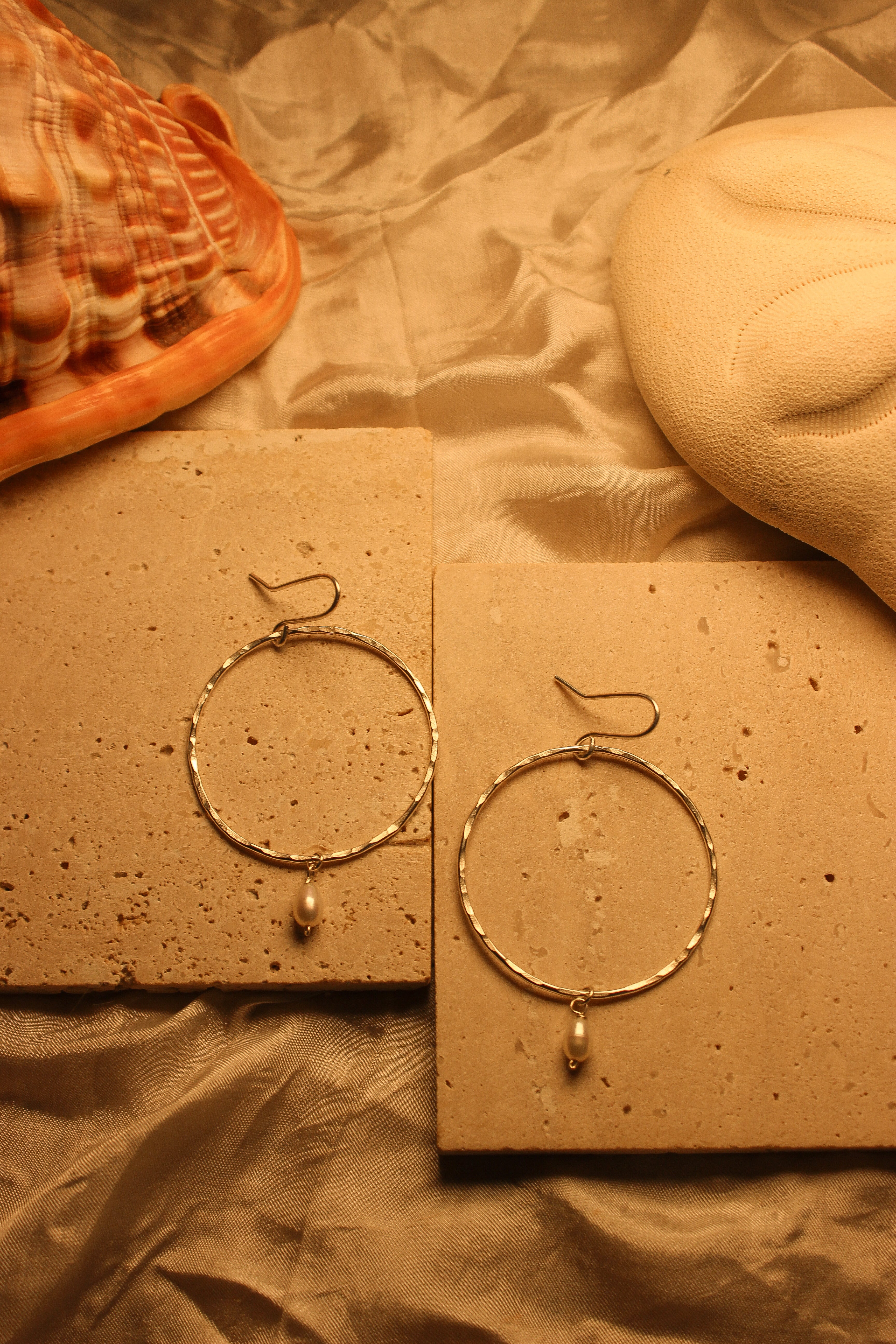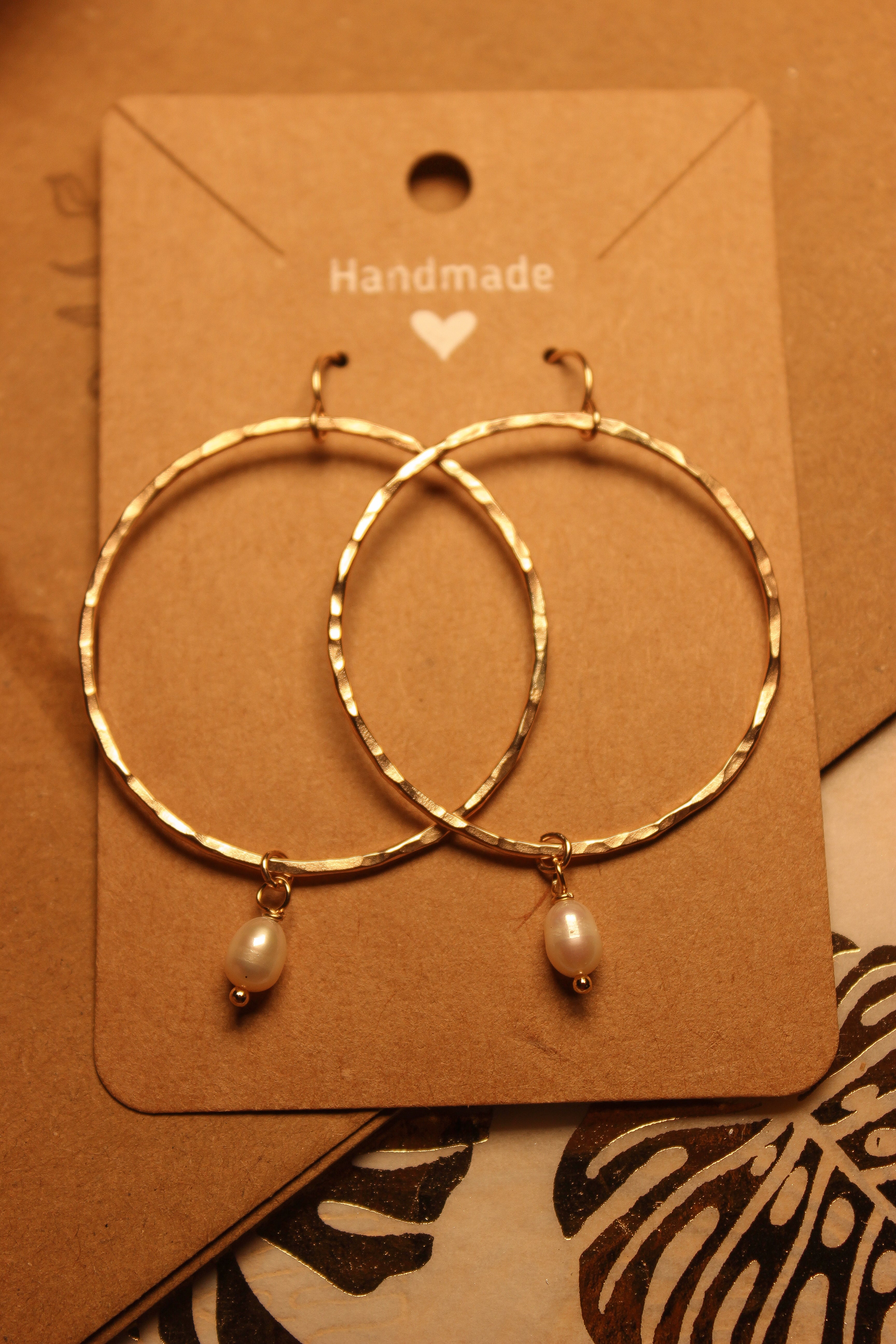Introducing Gigi Hoops - a stylish and sophisticated addition to your jewelry collection. Made from gold-filled material, these hammered hoops feature a delicate keshi pearl, adding a touch of elegance. Measuring at a medium size with a 2.5 inch diameter, these hoops are perfect for any occasion. Elevate your look with Gigi Hoops today.