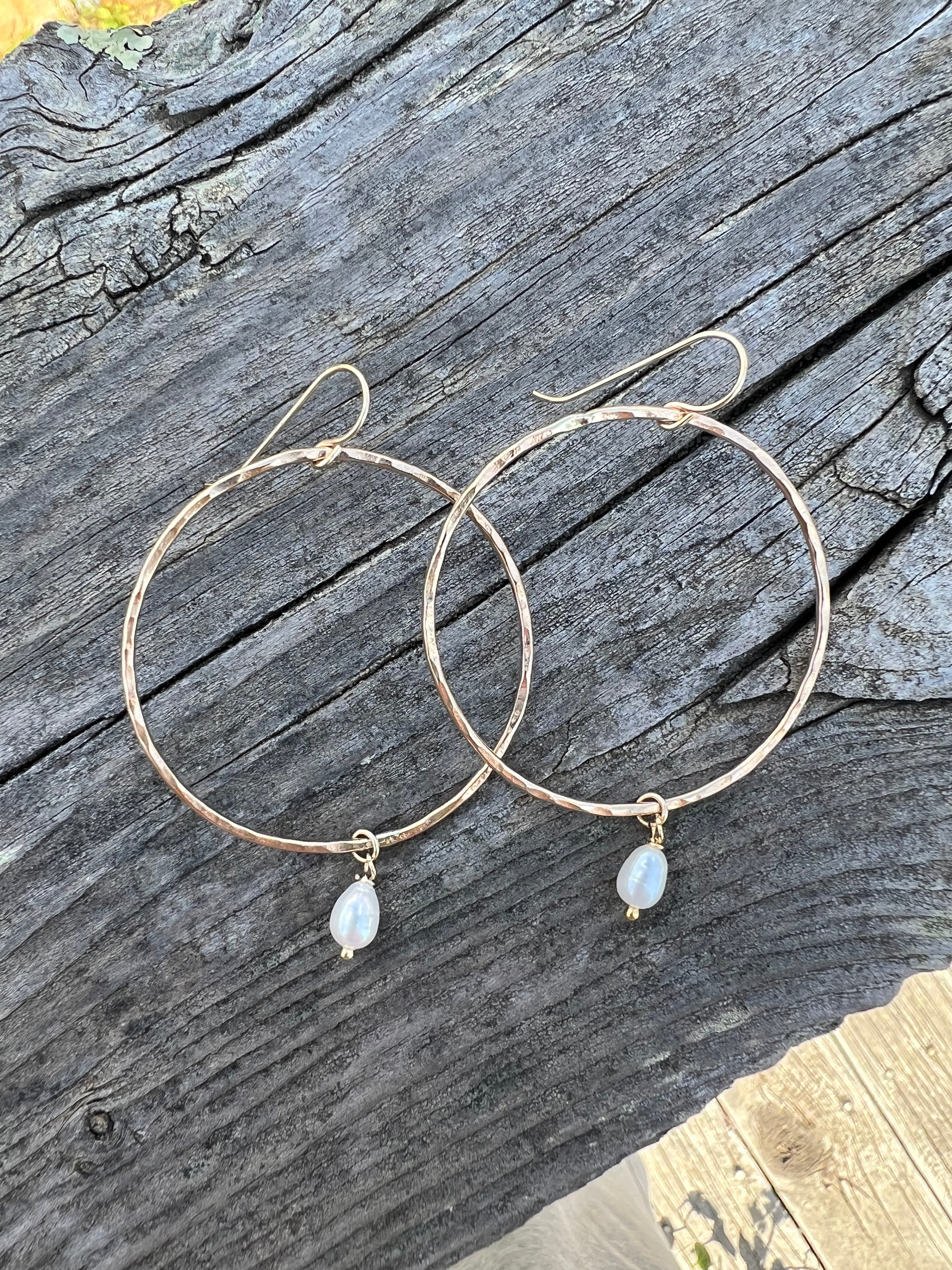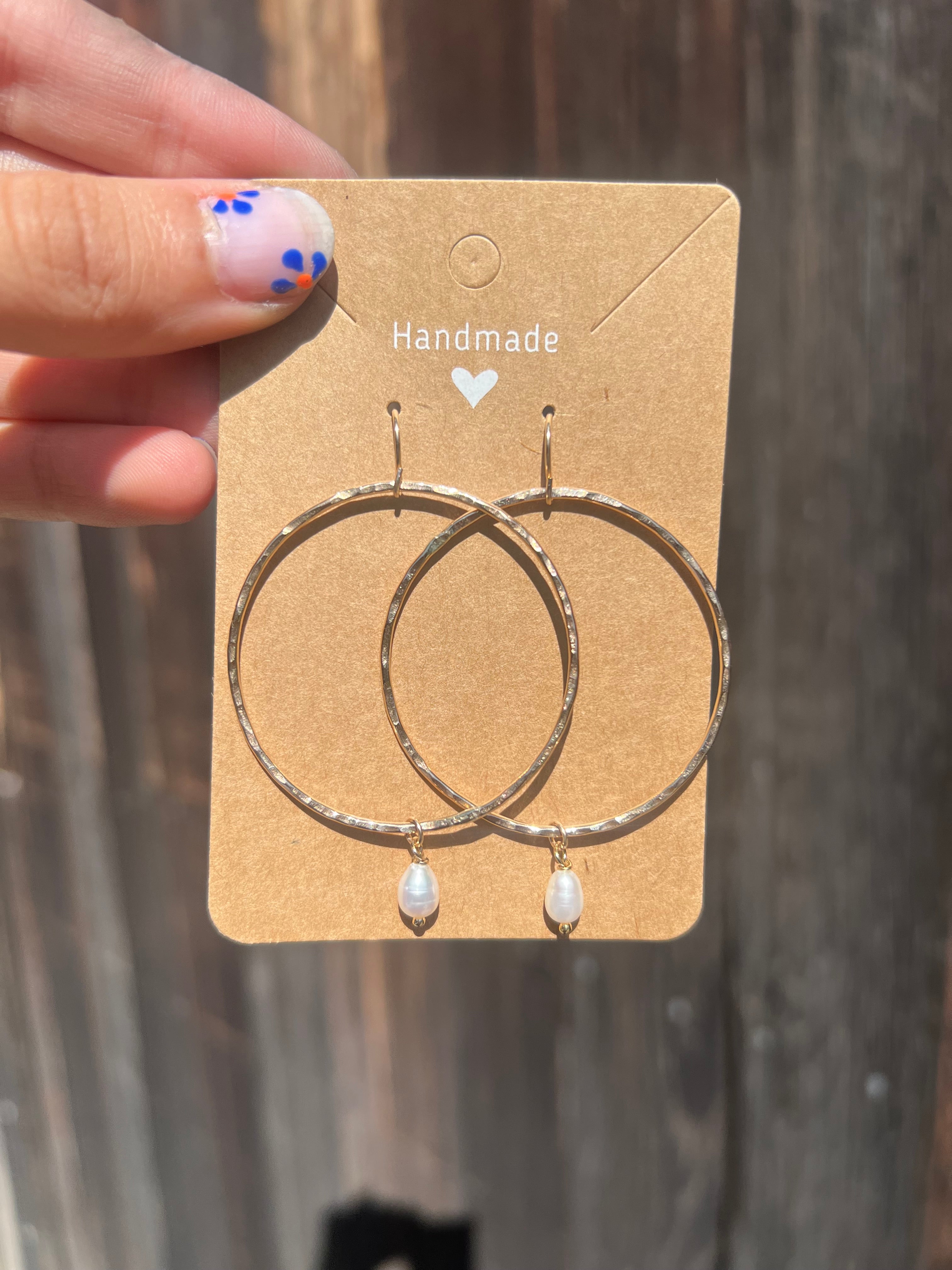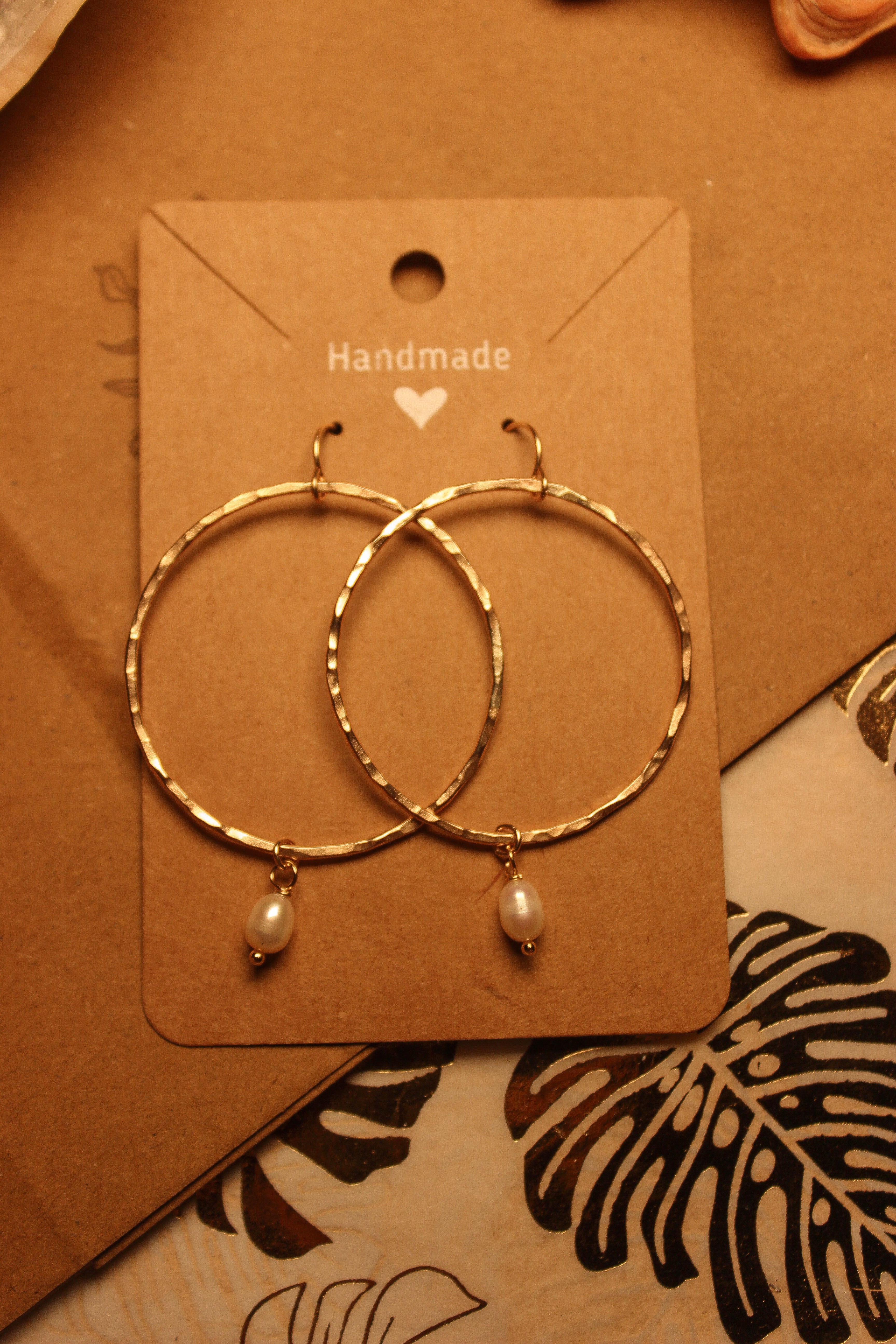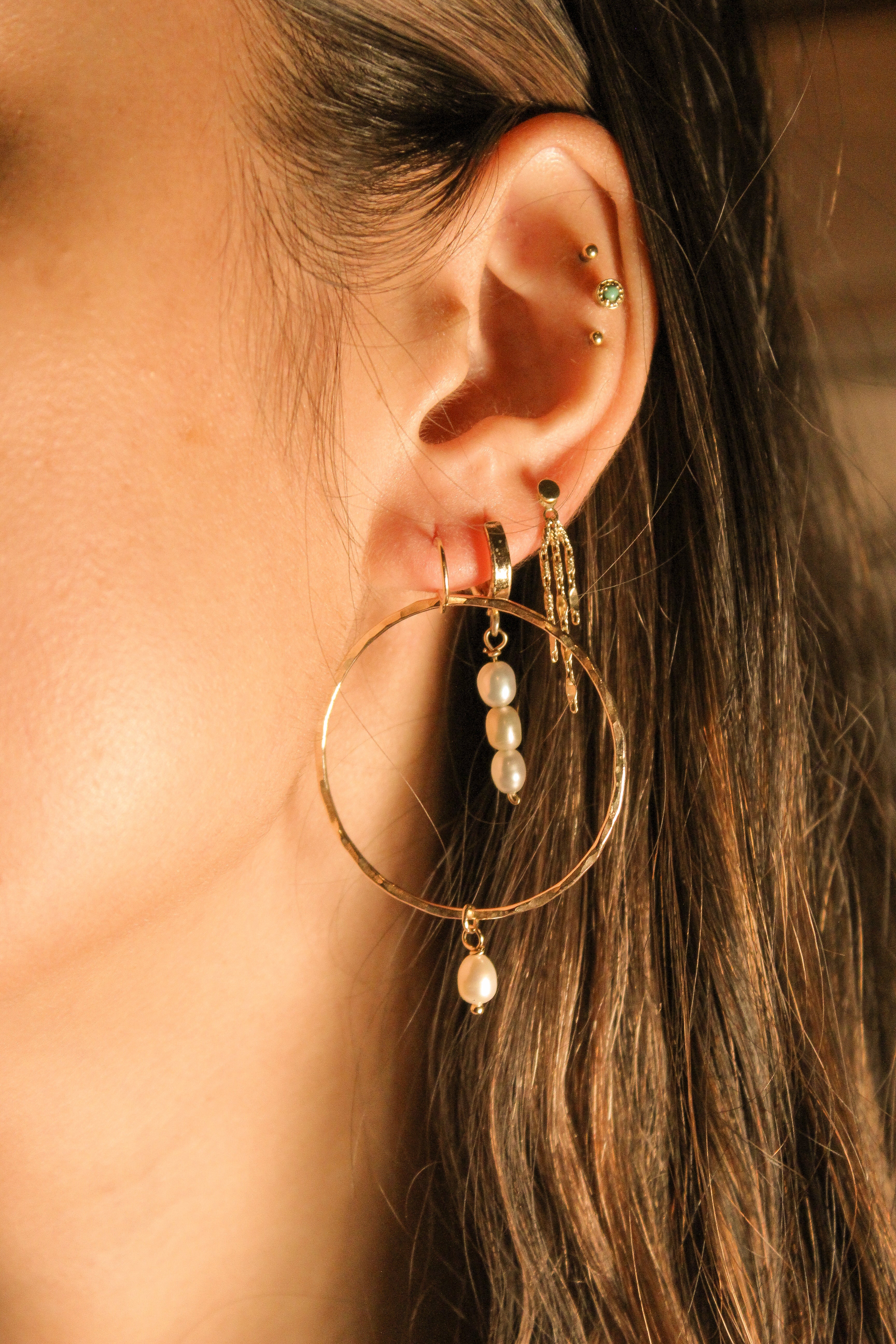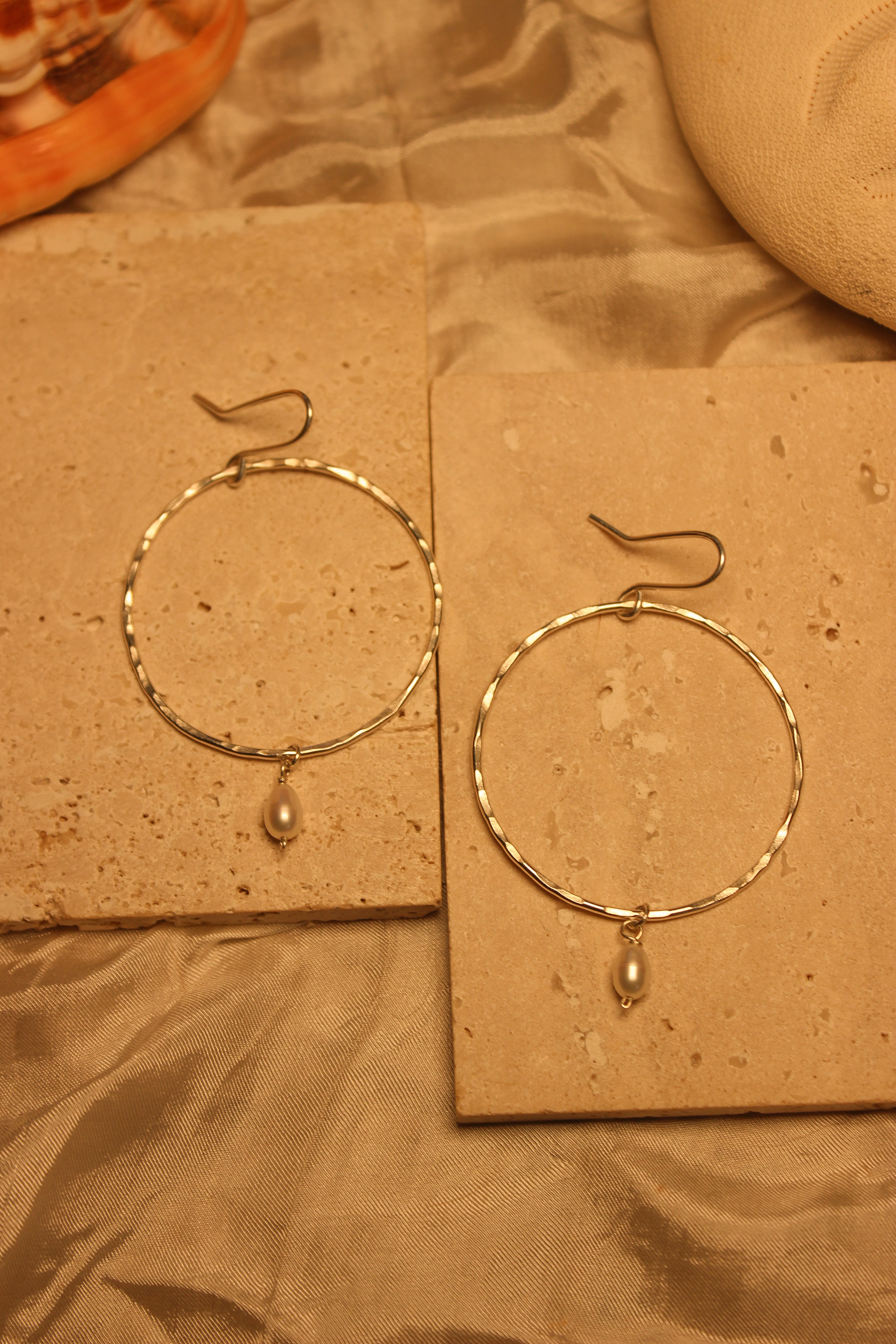 Introducing Gigi Hoops - a stylish and sophisticated addition to your jewelry collection. Made from gold-filled material, these hammered hoops feature a delicate keshi pearl, adding a touch of elegance. Measuring at a medium size with a 2.5 inch diameter, these hoops are perfect for any occasion. Elevate your look with Gigi Hoops today.