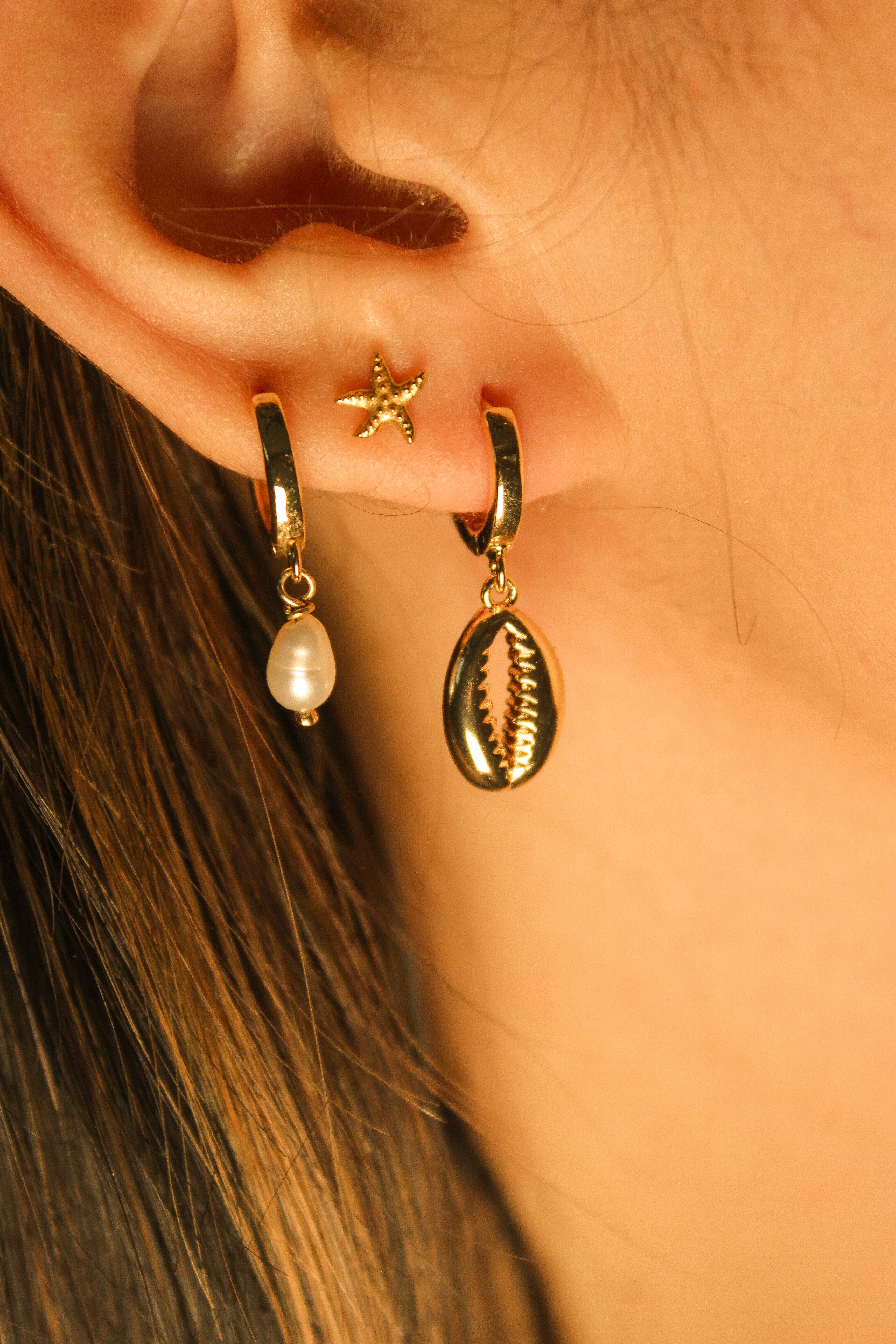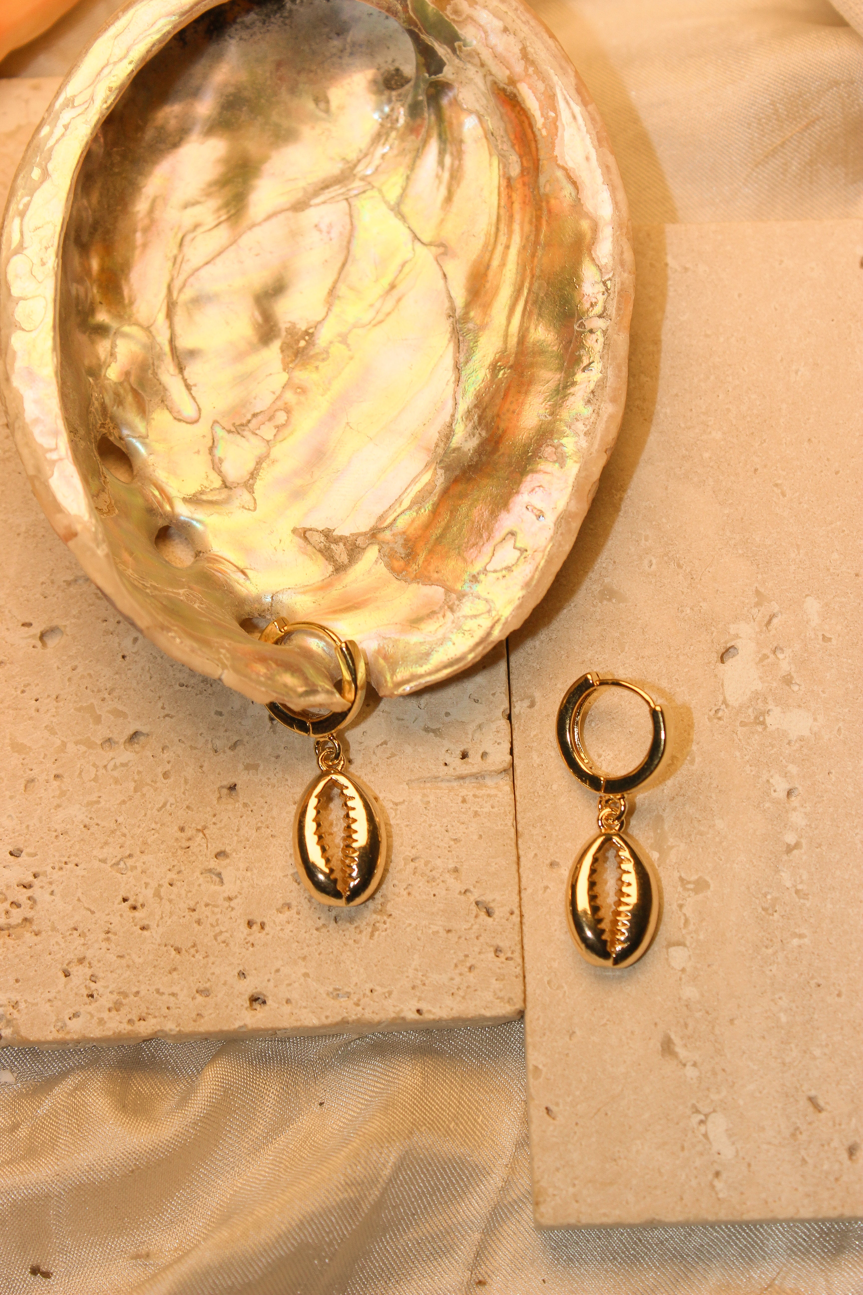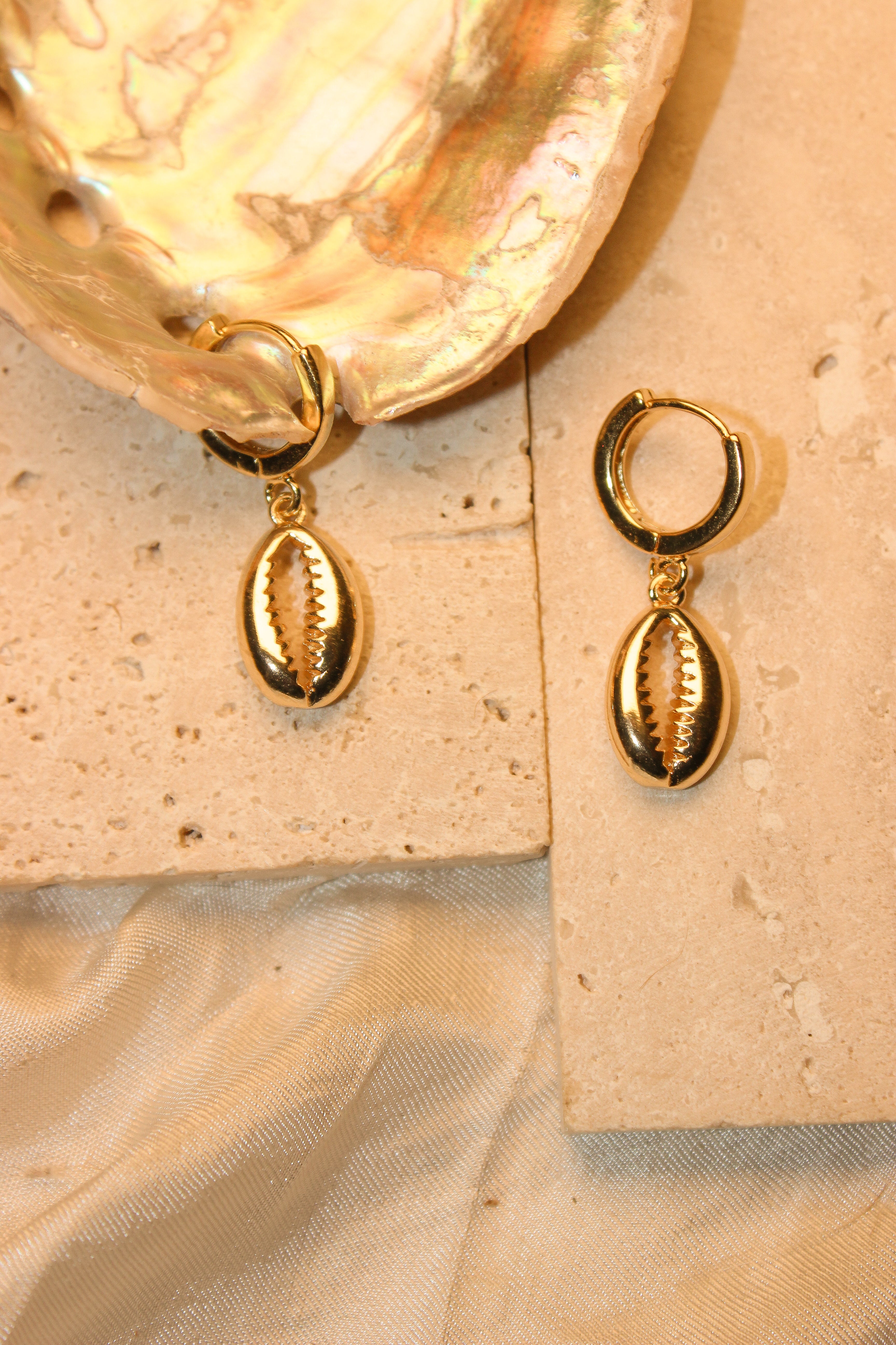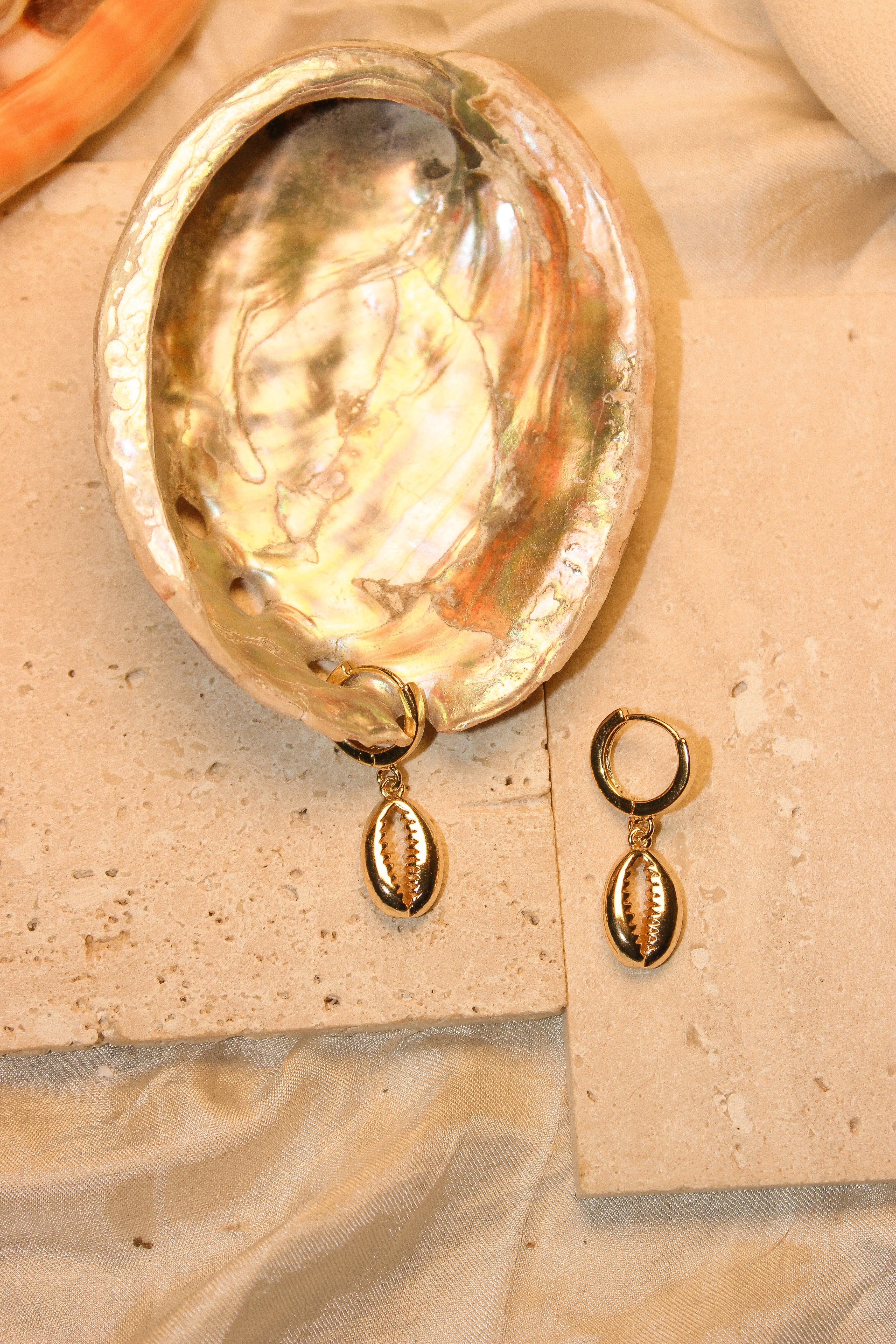 A seaside staple with a polished twist. These gold filled snap-back huggies feature a single cowrie shell charm — sleek, water resistant, and made to move with you from beach walks to sunset dinners. Lightweight and easy to wear, they bring a touch of shoreline shimmer to your everyday look.