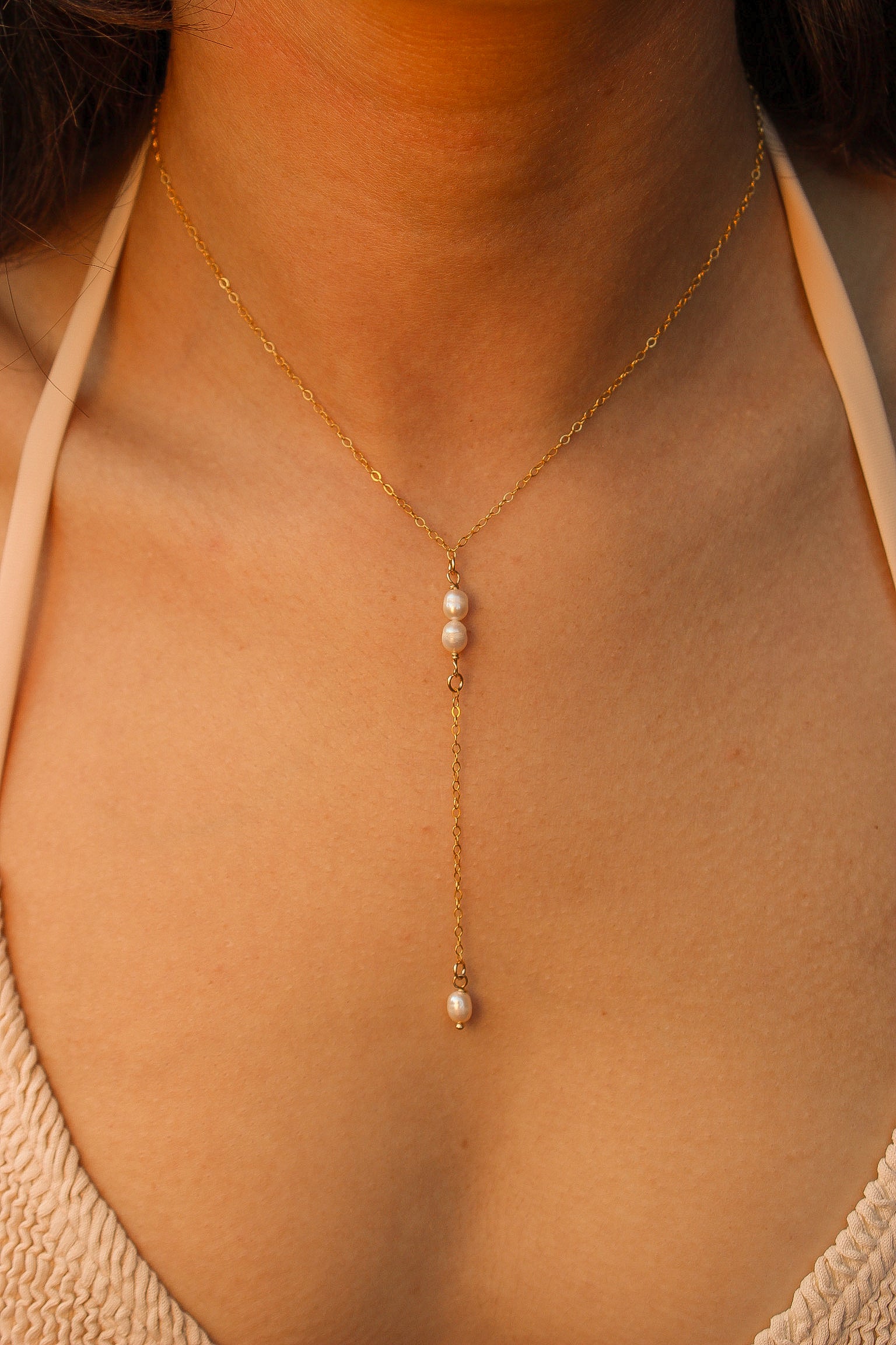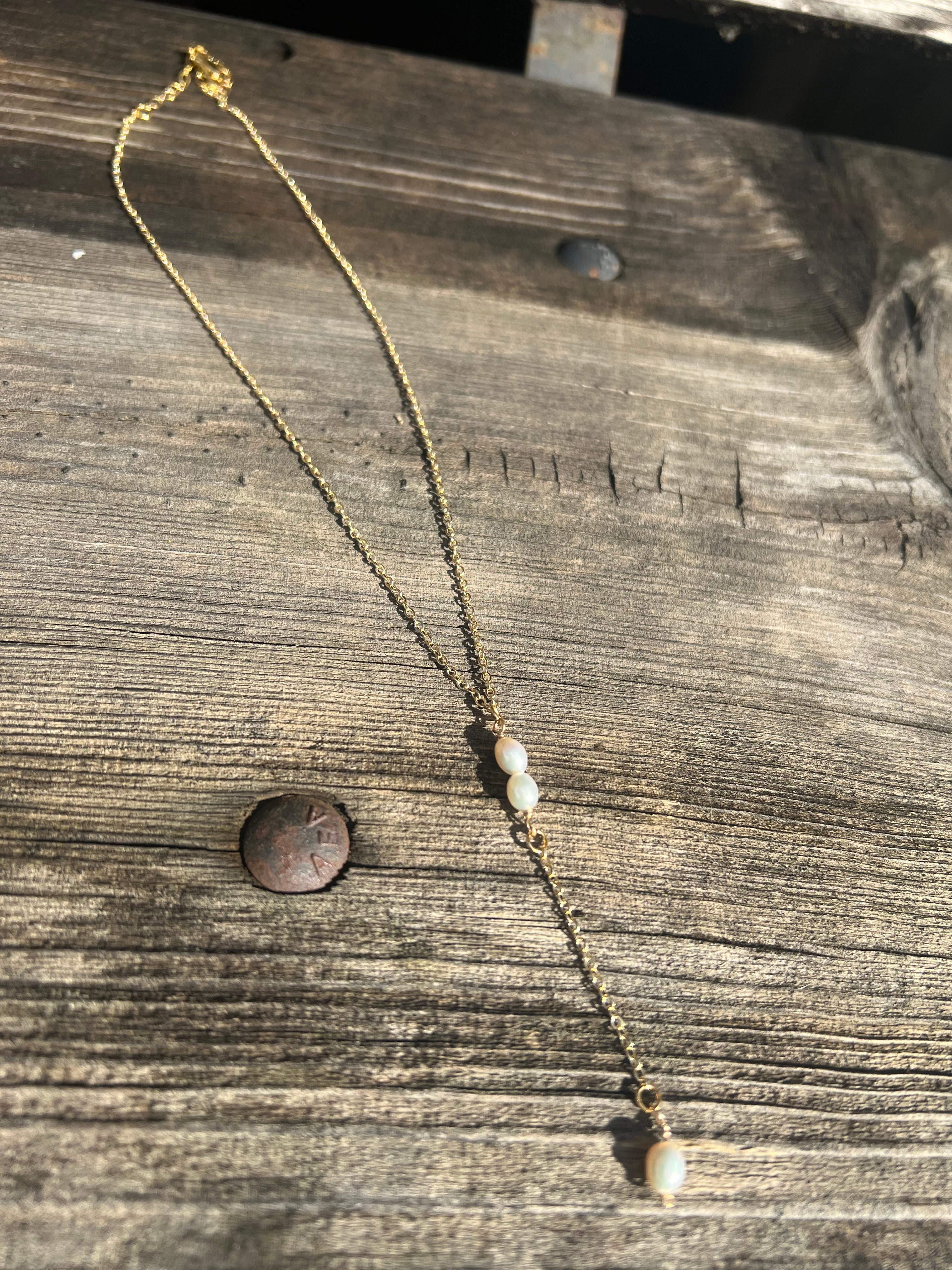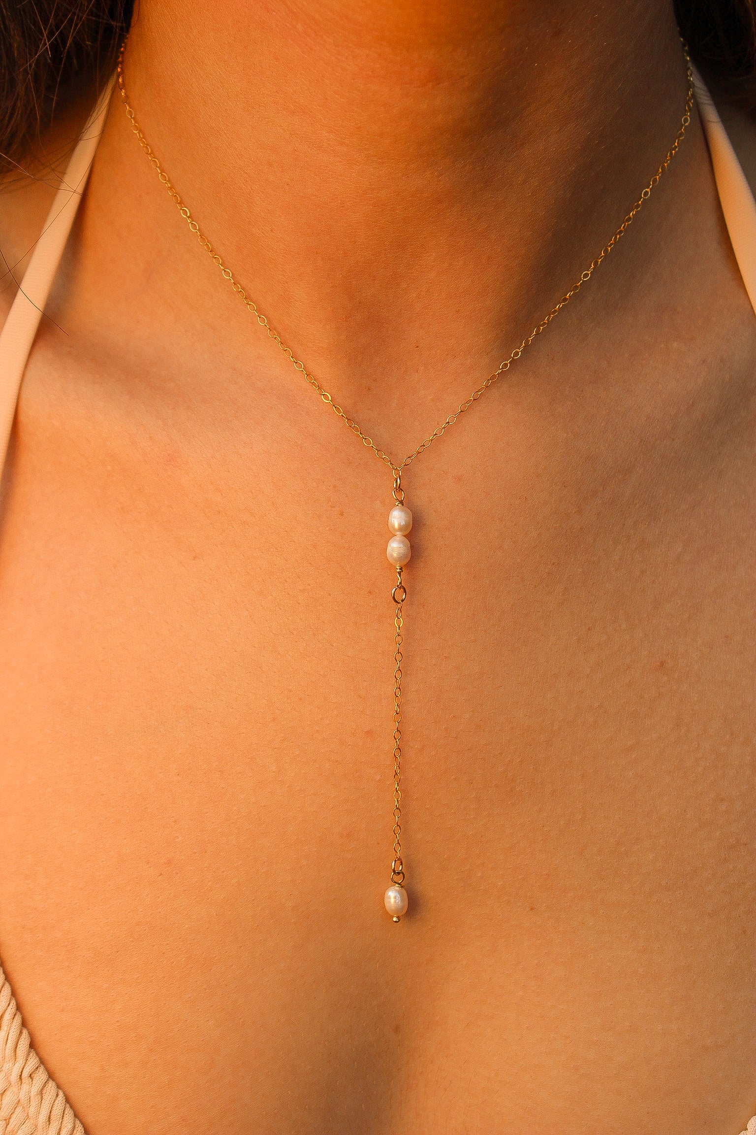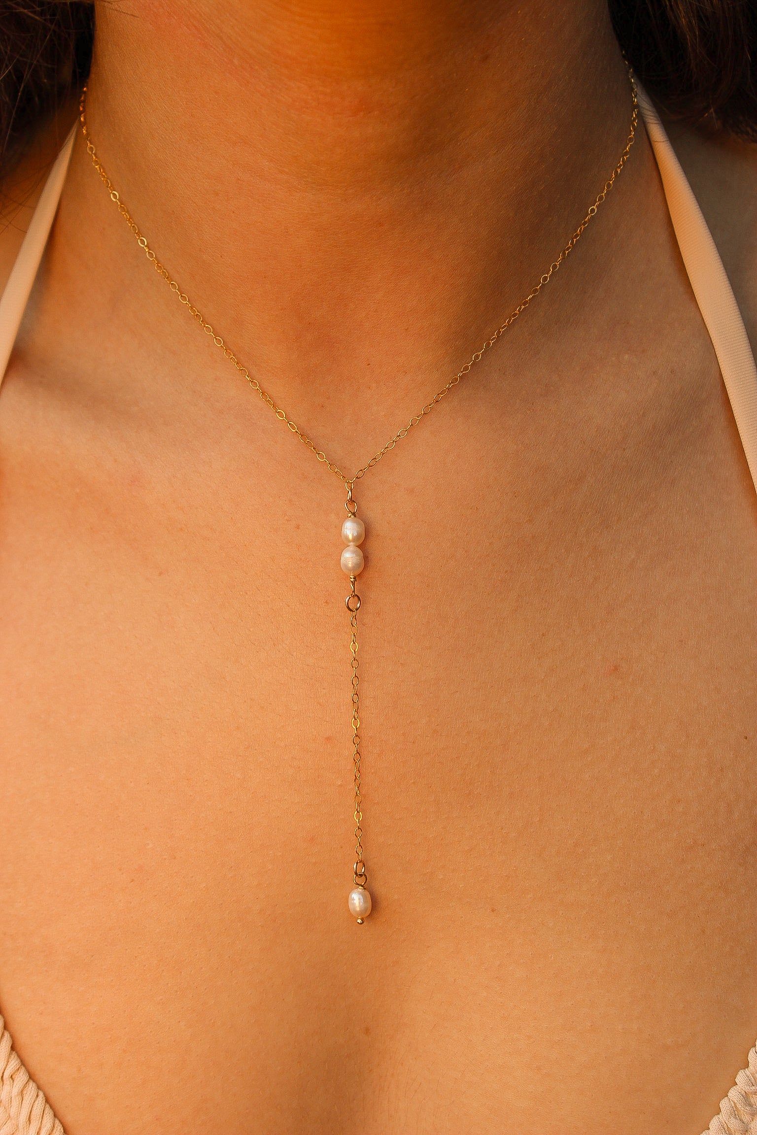Discover the elegance and versatility of our Makai Lariat. Crafted with a delicate 14k gold filled chain and adorned with small pearls, this necklace exudes sophistication. Its y-shaped lariat design allows for an adjustable length of 14-18 inches, providing a perfect fit for any neckline. Elevate any outfit with this timeless piece.