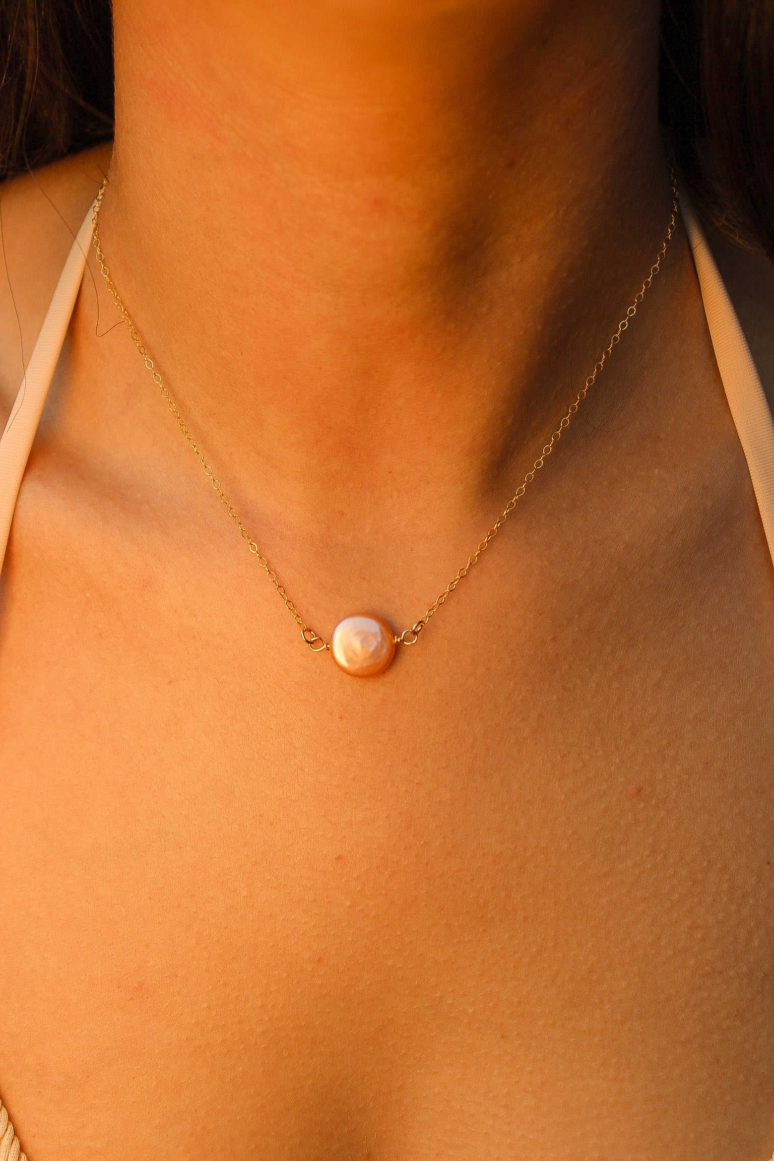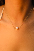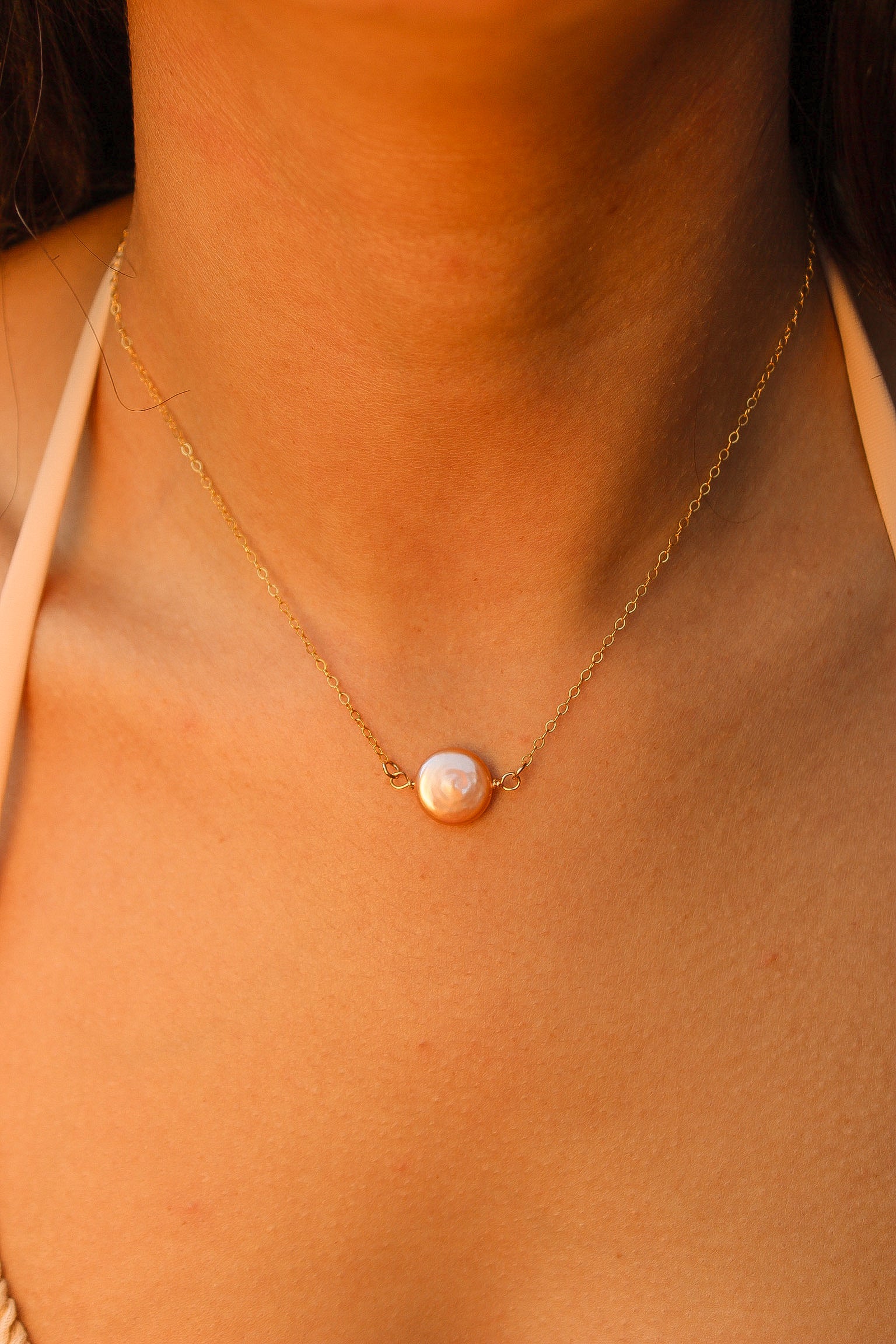 The Sunny Cove Necklace features an elegant 14”-18” adjustable chain with a lobster clasp, showcasing a stunning pink iridescent pearl at its center. This dainty and versatile piece is sure to add a touch of sophistication to any outfit. Perfect as a gift or for your own collection.