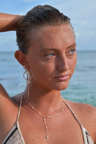 Introducing Lara Hoops - a stylish and luxurious addition to your earring collection. These hand hammered, gold filled mini hoops are adorned with elongated, stacked pearls and a delicate drop down chain detail. Elevate any outfit with these unique and elegant earrings.