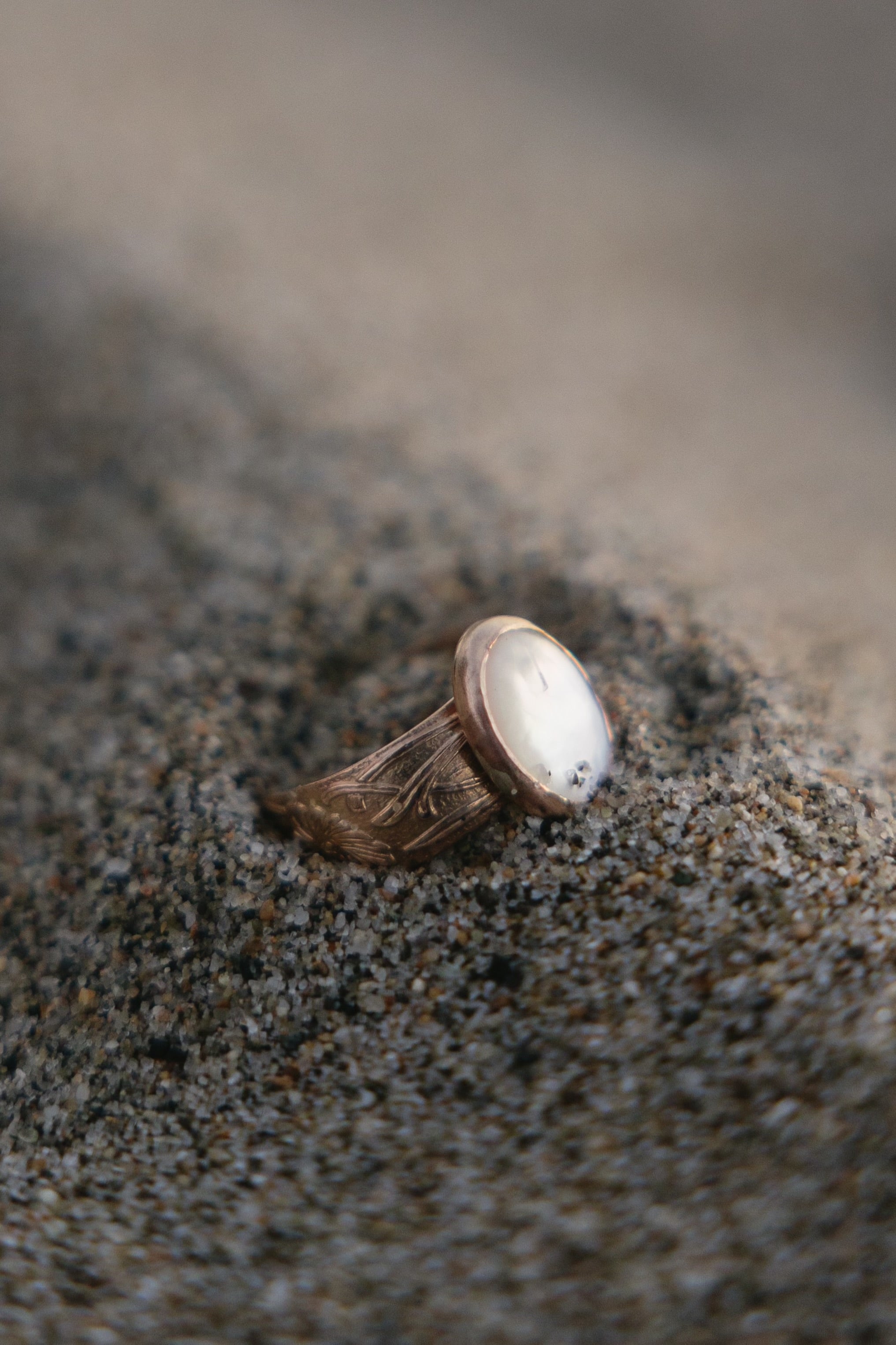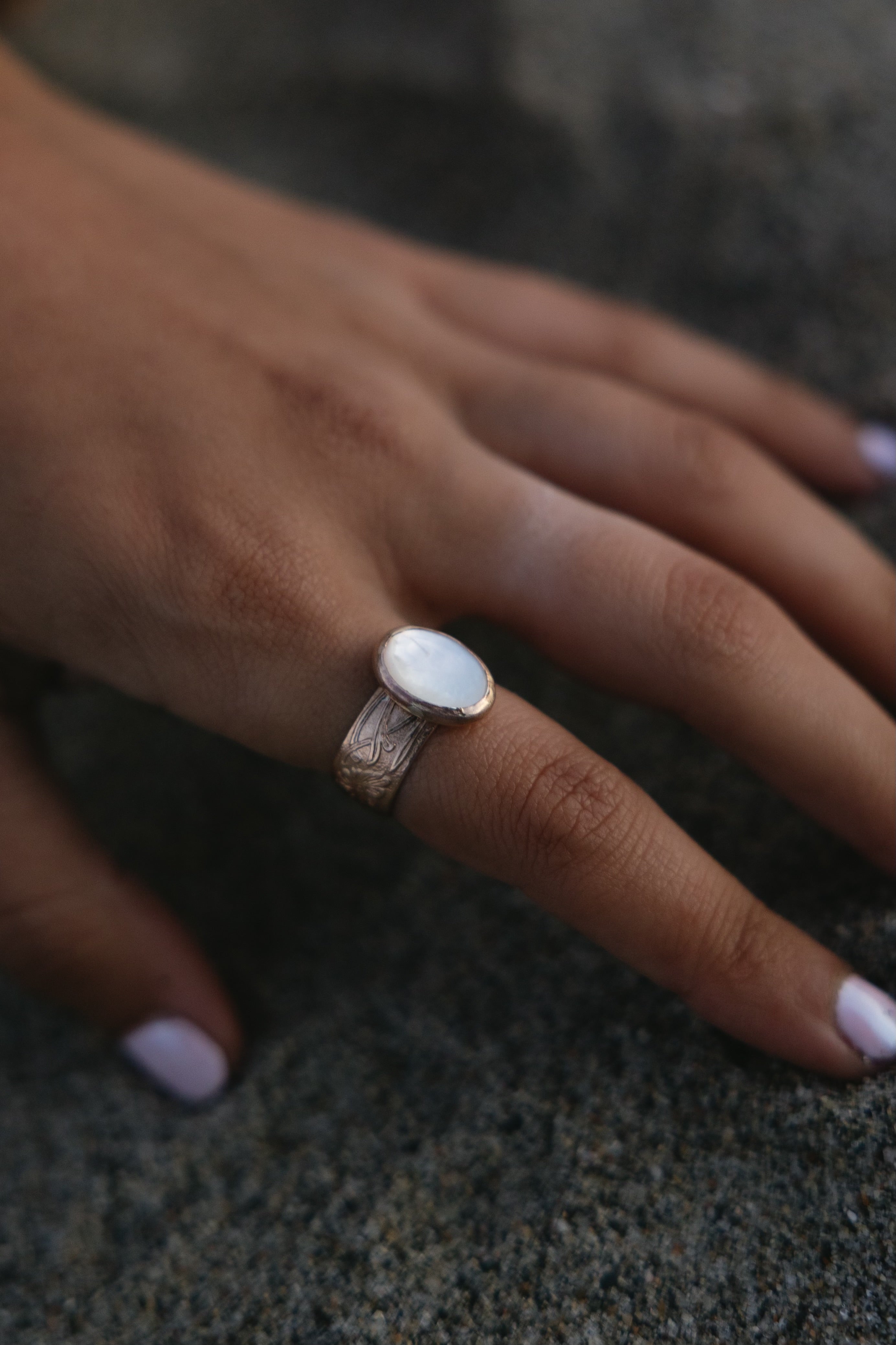 Experience elegance and sophistication with our Gold Filled Floral Design Thick Band featuring a luxurious oval pearl gemstone. Available in sizes 6-9, with custom sizes upon request. Enhance your style with this exquisite piece. We recommend sizing up if you are between sizes as band is thicker and will fit a bit tighter.