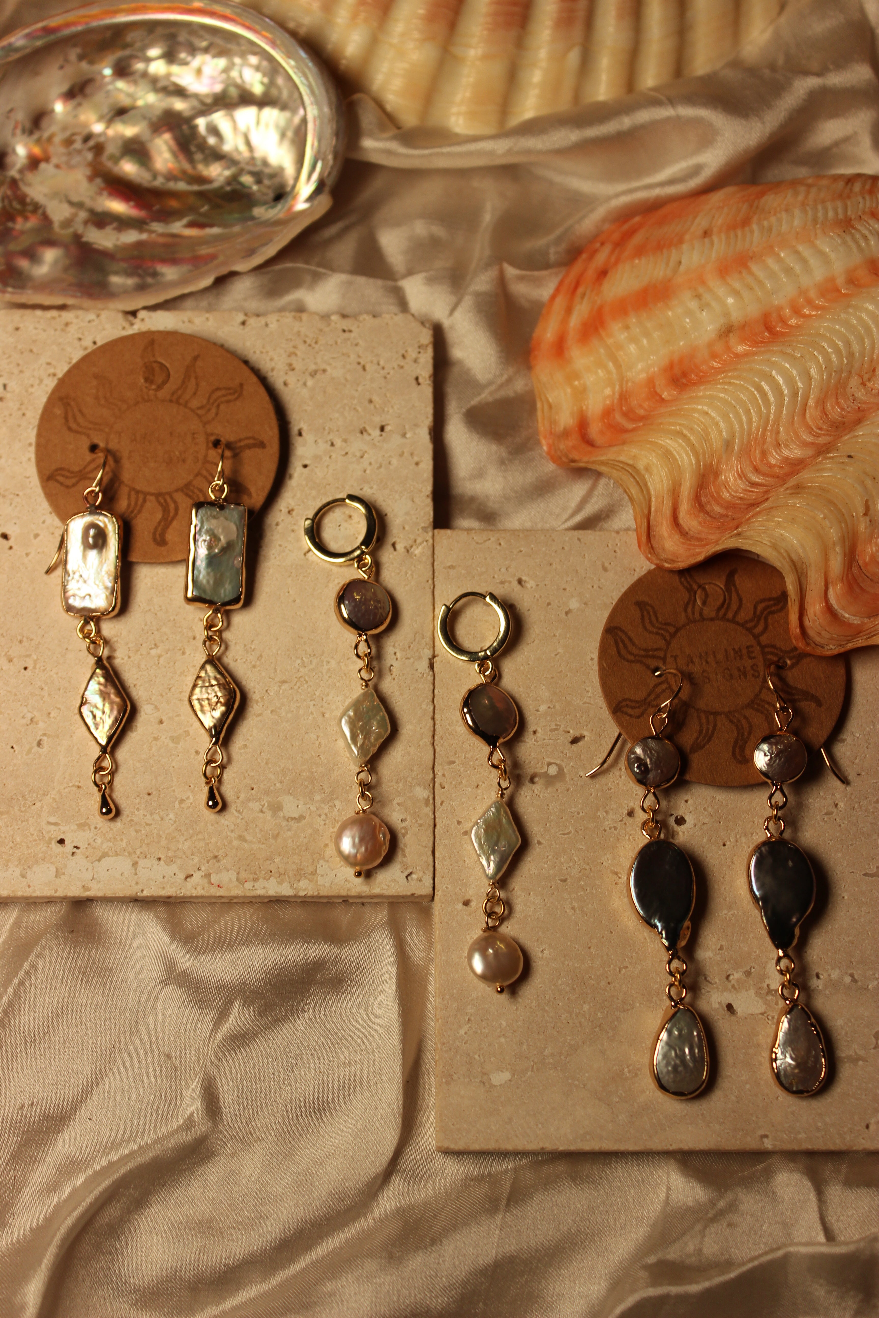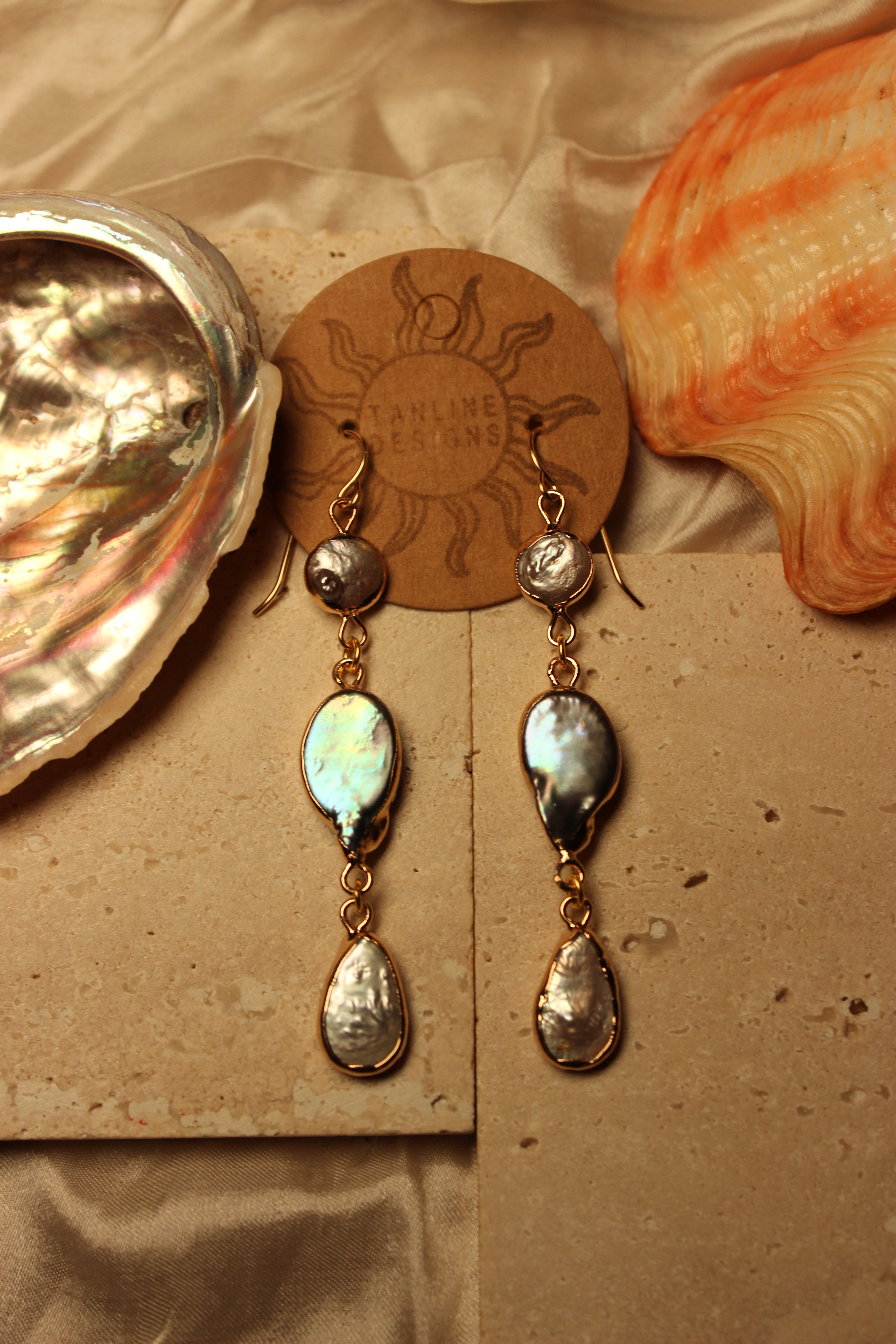 Hand assembled with gold filled components and gold electroplated settings, these earrings are designed to feel elevated yet effortless. The elongated silhouette creates movement without feeling heavy, making them perfect for beach dinners, weddings, or slow coastal mornings.