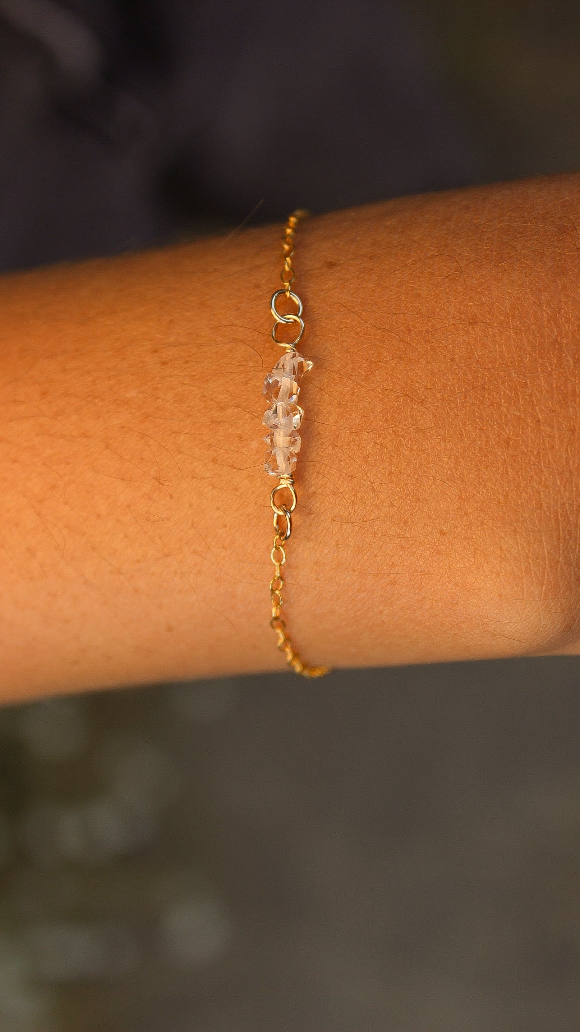 Discover the celestial beauty of our Stardust Bracelet. This 5.5”-7.5” adjustable chain bracelet boasts a sparkling cluster of raw herkimer diamonds, carefully crafted to add a touch of sparkle to any outfit. With its easy-to-use lobster clasp, this bracelet will make the perfect addition to your jewelry collection.