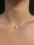 The STJARNA necklace brings a touch of elegance with its adjustable 14-18" chain and layered design featuring a stunning gold star-shaped, electroplated baroque pearl in the center. Crafted in gold-filled metal for lasting quality and beauty.